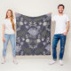 Symmetrical dark purple floral wallpaper pattern featuring stylized thistle-like flowers in lavender and pale gray-green tones against a deep indigo background.