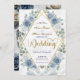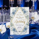 Set a sophisticated tone for your special day with this modern romantic design, blending soft blues, elegant swans, and geometric luxury for a timeless look.