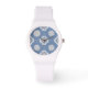 Symmetrisk Orange Flower Tiled Mönster på Blue Armbandsur