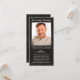 Den här elegantens anpassningsbar-sympatifoto På ett bönekort för begravning i Loving-minnet finns ett foto som avgränsas av ett tunt faux silver ram och ett fingersvart läder. Ovanför grått-skriptet står det "In Loving Memory" med namn och data för att anpassa sig tillsammans med en kort-minnesstund. Kortets baksida har en begravningsbön som du kan lämna som det är eller anpassa. Designad av konstnären Susan Coffey.