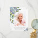 Tack till din familj och dina vänner för att de närvarar vid din kära begravning och/eller deras vänliga sympatianteckningar med det här fotokortet för personlig av elegant blommigt. Den här vackra designmallen för blommigt innehåller ett foto på framsidan med ett tunt grått ram accentuerat av blå och lavender-vattenblommor i det övre lämnat hörnet och den nedre högerna. Under grått-skriptet står det "In Loving Memory" med ett namn och datum att anpassa. Kortets baksida har ditt tack, namnteckning och citat för att du ska kunna anpassa och accentueras på ett bra sätt av fler hydrologiska blommar. Designad av konstnärer ©Susan Coffey och Tim Coffey.