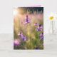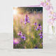 Mjuka vilda blommor från lila i en ängsskugga för sympati. Text kan redigeras.