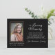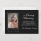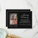 Den här ädla designen har en elegant guldgyllene ram med vit handskriven text och serif-text I ett kärleksfullt minne på den svarta bakgrunden. Lätt att lägg till bild.Kortets baksida är svart färgad. Ge dina kära under eller efter begravningen.