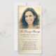 Elegantens fotosympati för ett bönekort för begravning innehåller ett anpassningsbar foto och nedan på en faux guld-texturerad bakgrund. Det står i svart skript "In Loving Memory" med ett namn, data och minnesmeddelande som visas av en blomstrande avskiljare för blommigt. På baksidan av kortet finns en bön på grund av faux guld. Designad av konstnären ©Susan Coffey.