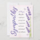 Uppmuntra någon som sörjer över förlusten av en älskad person med den här unika designen med stort lodräts rubrik "Sympati", följt av följande meddelande: "Må Gud trösta ditt svidande hjärta?, lindra din smärta och sorg och omge dig med fred." Bakgrundslaverender, fjäril- och blomillustration på vattenfärgsbakgrunden struktur. Tillbaka har ett helt redigerbart budskap: "Mina tankar och böner är med dig. Platshållare nedan för ditt namn. Kortets grund innehåller en fullt redigerbar bibelvers. "Bladade är de som sörjer, för de ska vara trötta. Matthew 5:4."
