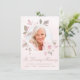 Tack till din familj och dina vänner för att de har deltagit i din kära begravning och deras vänliga anteckningar med det här fotokortet för personlig av elegant blommigt. Den här eleganten har ett foto på framsidan med en handmålad vattenfärgsfärgad blommigt ram i rosa ros och grönt. Under klassiskt skript står det "In Loving Memory" med namn och data för att anpassa sig. På baksidan av kortet finns ett tackmeddelande, namnteckning och citat som du kan använda för att anpassa en rosenknopps accent. Designad av konstnären Susan Coffey.