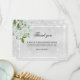 En enkel sympati och elegant tack för att du fick ett kort med foto. En faux silver-tittar bakgrund, en vit ram, faux glitter-damm, vita blommigtar och grön. Anpassa och lägg till tackkortet. Svart text.