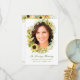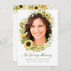 Tack till din familj och dina vänner för att de har deltagit i din kära begravning och deras vänliga anteckningar med det här fotokortet för personlig av elegant blommigt. Den här botaniska designmallen innehåller ett foto på framsidan med en ram av handmålade vattenfärgade solrosor och grönaktiga... Under gröntens skript står det "In Loving Memory" med ett namn och datum att anpassa. Kortets baksida har ditt tack, namnteckning och citat så att du kan anpassa dig och få en bra accent av en solblomma. Designad av Susan Coffey.
