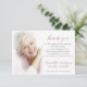 Sympati Anpassningsbar Photo Funeral Tack, ditt kort. Ett rent, enkelt och hjärtligt "tack"-meddelande. Anpassa med en bra bild av din älskade. En porträtt bild är att föredra. Vi har andra val som passar för "liggande" bilder. Ett vitt överlägg med avbländade foton läggs till ovanpå fotot för ett mjukt utseende, vilket är valfritt eller borttaget. detta kort till alla familjer och vänner som har varit ett stort stöd med sin tanklöshet, kärlek och vänlighet under er sorgetid. Skript i Rosa.