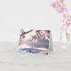 Cherry-blommarna hänger delikatligen över en kropp av vatten, där en enda dropp skapar krämer och fångar naturens lugn skönhet för sympati tack. All text kan redigeras.