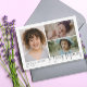Tack till vänner och familj för deras stöd under din svåra tid efter att du förlorat en älskad med det här fotokollaget tack vare ditt kort där du kan lägga till tre foton av din älskade. I det kärleksfulla minnet skrivs i det nedre hörnet av högerna, och din kära namn och år lever i det nedre lämnat hörnet. På baksidan kan du skriva ett personligt tackkort för hand.