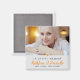 En modern sympatimagnet har ett foto längs toppen med skript och klassteckensnitt som överbelastar lätt grått. Dekorativt hjärta, magnet är en sann keepé.