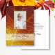 Visa uppskattning för dina gäster för att de minns ditt älskade barn efter att de passerat Firande i Life Memorial med de naturliga Shades of Autumn Löv Funeral Service Sympathy Flat Tackkort Card. Tack för att du har fått en digitalt målad naturbild av en röd färgad, orange och gult som byter löv. Anpassa den med en bild av det avlidna, födelse och död data och ert personliga budskap på motsatt sida. Unik inmatning eller idé för en höstsäsong i september, oktober eller november.