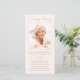 Den här elegantens anpassningsbar-fotosympati för begravningskort innehåller ett foto som gränsas till en vattenfärgsbakgrund för rosa. Över bild läser den i det moderna handskriften "In Loving Memory". Nedan är ett namn, data med ett minnesmeddelande som accentueras av en blomstrande blommigt-delare. Kortets baksida är vattenfärg för rosa. Designad av konstnären ©Susan Coffey.