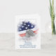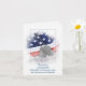 Militära hundbrickor på den amerikanska flagga i mjuk texturerad, vit bakgrundsutformning. Tack från familjen för kort, gåvor, donationer och blommor.