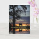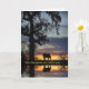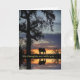 Ett vackert sympatikort med en häst i naturen med en ek träd, solnedgång och reflekterande i vatten. Ett enkelt sätt att skicka tankar till någon som lider skada.