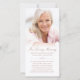 Elegantens fotosympati för ett bönekort för begravning innehåller ett anpassningsbar-foto och under det står skriften "In Loving Memory" i ro guld med ett namn, data och minnesmeddelande som visas av en blomstrande blommigt. På baksidan av kortet finns en bön med en ro guld-blomma på vit bakgrund. Designad av konstnären ©Susan Coffey.