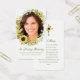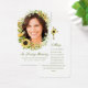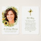 Skicka det här blommigten till familj och vänner i elegantens anpassningsbar till för att minnas din älskade. Den här designen innehåller ett foto på framsidan i faux guld med handmålade gult solblommor med grön färg. Nedan i skriptet grönt finns orden "In Loving Memory" med namn och data för personanpassning. Kortets baksida har en bön från Hail Mary som kan förvaras som den är eller anpassas efter en solrosa i guld kor. Designad av Susan Coffey.