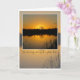 Kondoleans. Vackra orangens soluppgång bakom träd silhuette, reflekterad på sjö med svarta rötter i förgrunden. Texten säger: Jag är så ledsen för din förlust. Inuti kortet är tomt.