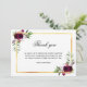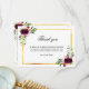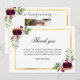 En enkel sympati och elegant tack för att du fick ett kort med foto. En elegant vit bakgrund, en faux guld ram och burgunda blommigtar. Anpassa och lägg till tackkortet.