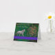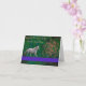 Sympathy Card for loss of a pet horse. Utformningen är en vit häst på grönt löv med en orange som blåser träd nära hästen. Orden på insidan kan ändras. Tack vare Pixabay och Kreativ Fabrica för en del av inslag i designen.