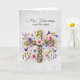 Ett vackert sympatikort med kor och rosa och lila blommor och knoppar visningen bredvid det.