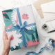 Ett fantastiskt blommönster med en mängd rosa- och vita blommor med lush grönt löv mot en soothing turcoise-bakgrund. Den här utformningen fångar naturens skönhet, skapar perfekten för en mängd olika produkter och sänker stilar.