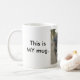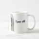Mugg med ett slut upp fotoet av en emus huvud, med ord ögon av!", och "är denna MIN mugg".