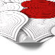 En unik vismisk valentinillustration med lökliknande hjärtan spridd i ett slumpmässigt mönster med ett rött hjärta framhävt.