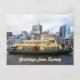 Hälsning från Sydney-vykort med berömd grönt och guld Sydney Ferry på Kung Street Wharf nära Darling Harbour, Sydney, Australien - vykort för anpassade.