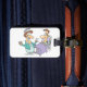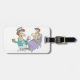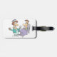 Det här är en sjuksköterska och patient. Sjuksköterskan står bredvid patienten i sängen. Den här sjuksköterskan och patientdesignen ser underbar ut på de här bagagemärkena
