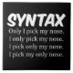 En lustig typografisk illustration som har syntaxen ord och sedan några meningar som förklarar hur viktig placeringen i ord är när man skriver. Den roliga designen handlar om att plocka näsan. Ord är bara flyttat till olika ståndpunkter i meningen med ge, det har en annan innebörd. Jag plockor bara min näsa. Detta är en utformning som skulle vara lämplig för alla som lär sig eller undervisar i engelska.