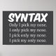 En lustig typografisk illustration som har syntaxen ord och sedan några meningar som förklarar hur viktig placeringen i ord är när man skriver. Den roliga designen handlar om att plocka näsan. Ord är bara flyttat till olika ståndpunkter i meningen med ge, det har en annan innebörd. Jag plockor bara min näsa. Detta är en utformning som skulle vara lämplig för alla som lär sig eller undervisar i engelska.