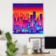 AI skapade en bild av en synthwave/cyberpunk stad med starkt ljus under ett solnedgång. Det är ett digitalt koncept konst med vassa detaljer och gradient färg. Bild licensierad under Allmän domänbeskrivning (CC0 1.0).