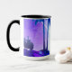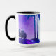 Enjoy your favorite drink with this artistic mug featuring a dreamy synthwave design. The scene blends palm trees, a glowing sky, and a futuristic motorcycle silhouette in vibrant purple and blue tones. Perfect for fans of digital art, retro aesthetics, and unique home décor.