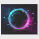 Synthwave Vaporwave Retrowave Glitch Circle med blå och rosa glöd med rök och partiklar på laserrutnätets bakgrund.