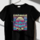 T-shirt för vintage-stil med ett återsol med sol, handflatan träd och en silhuett för stranden, tillsammans med frasen "syntvåghuls" 🌅 🌴 ✨