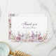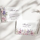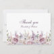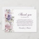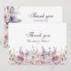 Elegant lila blomsterbröllopstackningskort med mjuka romantiska blommor och en raffinerad layout. Perfekt för att uttrycka din tacksamhet till gästerna på ett vackert och meningsfullt sätt.