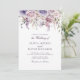 Elegant lila blomsterlig bröllopsinbjudan med raffinerad monogramdesign och mjuka romantiska blommor. Perfekt för trädgårds-, klassiska eller romantiska bröllop med en delikat lila palett.