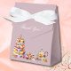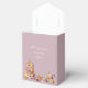 Den här charmiga, personliga presentasken för tebröllopsfesten är den perfekta avslutande detaljen för din bröllopsfest med tema teservering. Designen visar en vacker och detaljerad vintage blomstertepotta och tekopp, tillsammans med en stilren tre våningar hög tårttallrik överflödande med utsökt frostade cupcakes – allt mot en mjuk lila bakgrund. Elegant kalligrafi och chic typografi lägger till en sofistikerad touch. Ett vackert sätt att tacka dina gäster med en söt godsak eller en liten souvenir som göms inuti.
