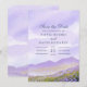 Fånga den förtrollande essensen av din speciella dag med vår Spara datum-inbjudan Lilac Night Sky Mountains Fields. Denna exklusiva pjäs visar en fängslande framställning av en lavendeltonad stjärnhimmel som blickar ut över majestätiska berg och pittoreska fält, varsamt skapad med akvarietekniker.