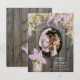 Detta vackra bröllop save the date-kort har ditt foto omgivet av vårens syren med färgglada lysande ljus på en bakgrund av åldrat lada trä. Vacker för en rustik bakgård eller utomhusceremoni.