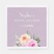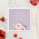 Personalisera denna utsökta blommiga bröllopsdusch servett, höjdpunkten av elegans och sofistikation för din speciella fest. Denna servett är inte bara ett enkelt tillbehör utan en statementbit som kommer att tillföra en chic touch till din evenemangsinredning. Mot en lugn lila bakgrund blommar ömtåliga akvarell-persika- och rosafärgade rosor graciöst sammanflätade med mjuk grönska, och sprider en aura av romantik och femininitet. Perfekt för din rosbröllopsfest, lunch eller picknick.