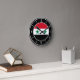 Syriens Elegant Round Clock med Syriens flagga placerad i mitten och vackra vita klocknummer klockan kant. Den fina svarta bakgrunden med vit oval inslag slutför designen och lägger tonvikten på elegansen. En vacker kombination av svartvitt och skicklig integrering av det nationella flagga gör den här klockan till perfektens gåva och den underbara show biet på väggen. © 2022 LänderAvVärlden