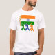 Tre silhouetted indiska syrsaspelare under den indiska flagga med landnamn Indien längs sidan.