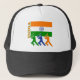 Tre silhouetted indiska syrsaspelare under den indiska flagga med landnamn Indien längs sidan.