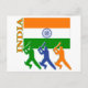 Tre silhouetted indiska syrsaspelare under den indiska flagga med landnamn Indien längs sidan.
