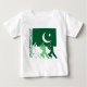 Tre Silhouetted syrsaspelare framme av den pakistanska flagga med landnamn Pakistan på sidan.