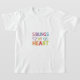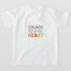 Texten står på ett rent sätt på skjortans framsida, kanske i ett ljust och vänligt färg.Texten står ensam, kanske i ett lekfullt typsnitt med ett enda hjärta placerat strategiskt nära orden. Den övergripande tonen kan vara hjärtklappande, lekfull eller coola beroende på vilket typsnitt, färger och illustration som väljs i stil