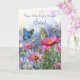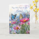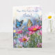 Ett vackert Morsdagskort till din syster, med ömtåliga blå och gula fjärilar som svävar graciöst bland rosa blommor, och svämmar över av hjärtliga önskningar.